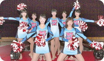 - ロの先生が教えてくれる楽しいチア! いつもわいわい明るいサークルです。経験者も初心もみんな大歓迎です!