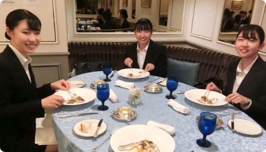 披露宴に参加したゲストの方々に料理や飲み物などを提供するなど、披露宴の進行をサポートする業務を体験しました。周囲の状況に応じて素早く行動できる臨機応変な対応力が必要だと感じ、インターンシップを通じでプランナーだけでなく様々な職種の方が関わっていることを学び、視野が広がりました。