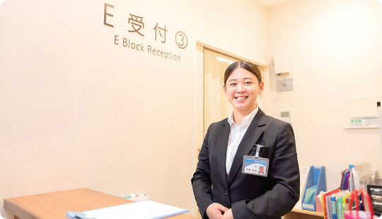 外来医事課の受付業務を体験。さまざまな症状で来院される患者さまに対し、一人ひとり寄り添うことの大切さを実感しました。また、診察室の先生に資料を届けるなど、職種を超えての業務を経験し、広い視野を持って業務に取り組む重要性を学びました。